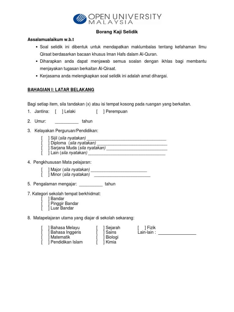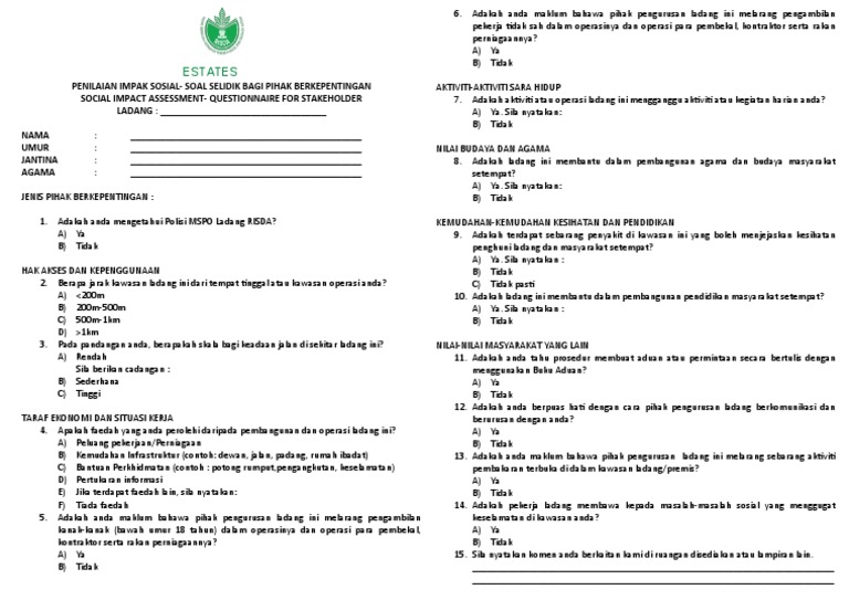 Contoh Borang Soal Selidik Masyarakat Setempat